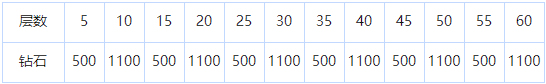 5、爬塔,塔一共有60層,每5層都有鉆石獎勵,一起有9600鉆石